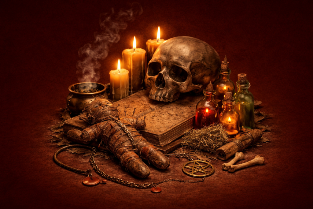 La sorcellerie traditionnelle est utilisée pour agir sur les blocages invisibles et les situations difficiles. Chaque intervention est réalisée dans le respect des traditions ancestrales africaines, avec pour objectif la protection et le rétablissement de l’équilibre spirituel :